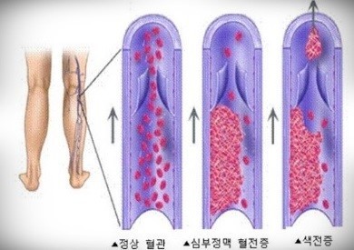하지의 정맥 내에서 생긴 혈전이 우심방, 우심실을 거쳐 폐동맥으로 흘러가 폐동맥을 막으면 폐색전증을 유발할 수 있습니다.
