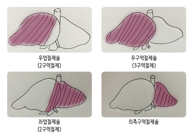 간 절제술은 완치를 목표로, 종양의 절제가 가능하다면 간경변증이 없거나 그 정도가 심하지 않아 간 기능이 충분하다고 판단될 때 가장 우선적으로 선택할 수 있습니다.
