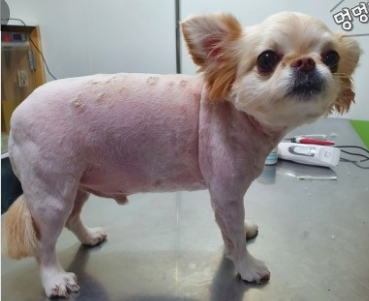 3) 붉은색 피부 : 털이 빠진 부위가 붉게 변하고 염증이 발생할 수 있습니다.