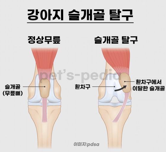 3) 근육 부족 : 슬개골을 제자리에 고정하는 역할을 하는 근육이 약해져 탈구를 유발할 수 있습니다.