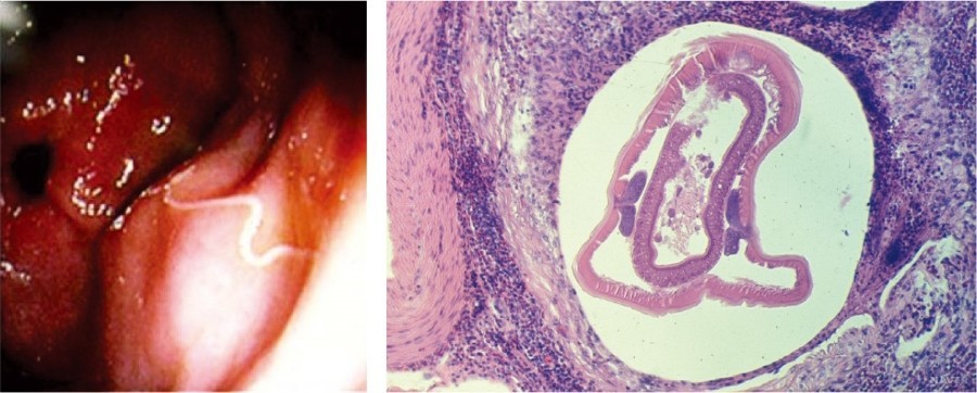2) 내시경치료 : 내시경을 이용해 고래회충을 제거합니다.