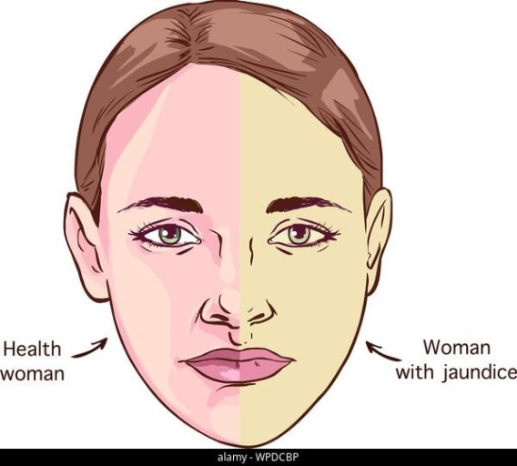 ◎ 피부와 눈의 황달 : 빌리루빈이 피부와 눈의 결합 조직에 침착되어 피부가 노랗게 변하고, 분의 흰자위가 노랗게 변합니다.