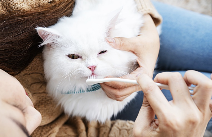 2) 정기적인 구강 관리 : 양치질을 하거나 구강 세정제를 사용해 치석을 제거한다.