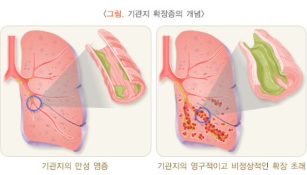 기관지확장증은 기관지벽이 손상되어 기관지가 늘어나는 질환입니다. 기관지는 폐로 공기를 전달하는 관으로, 기관지확장증이 발생하게 되면 기관지가 좁아져 공기의 흐름이 방해를 받게 됩니다.