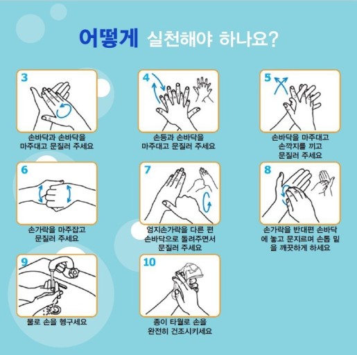 (1) 손을 깨끗하게 씻는다 : 손을 씻을 때는 비누와 물을 사용해서 30초 이상 씻습니다.