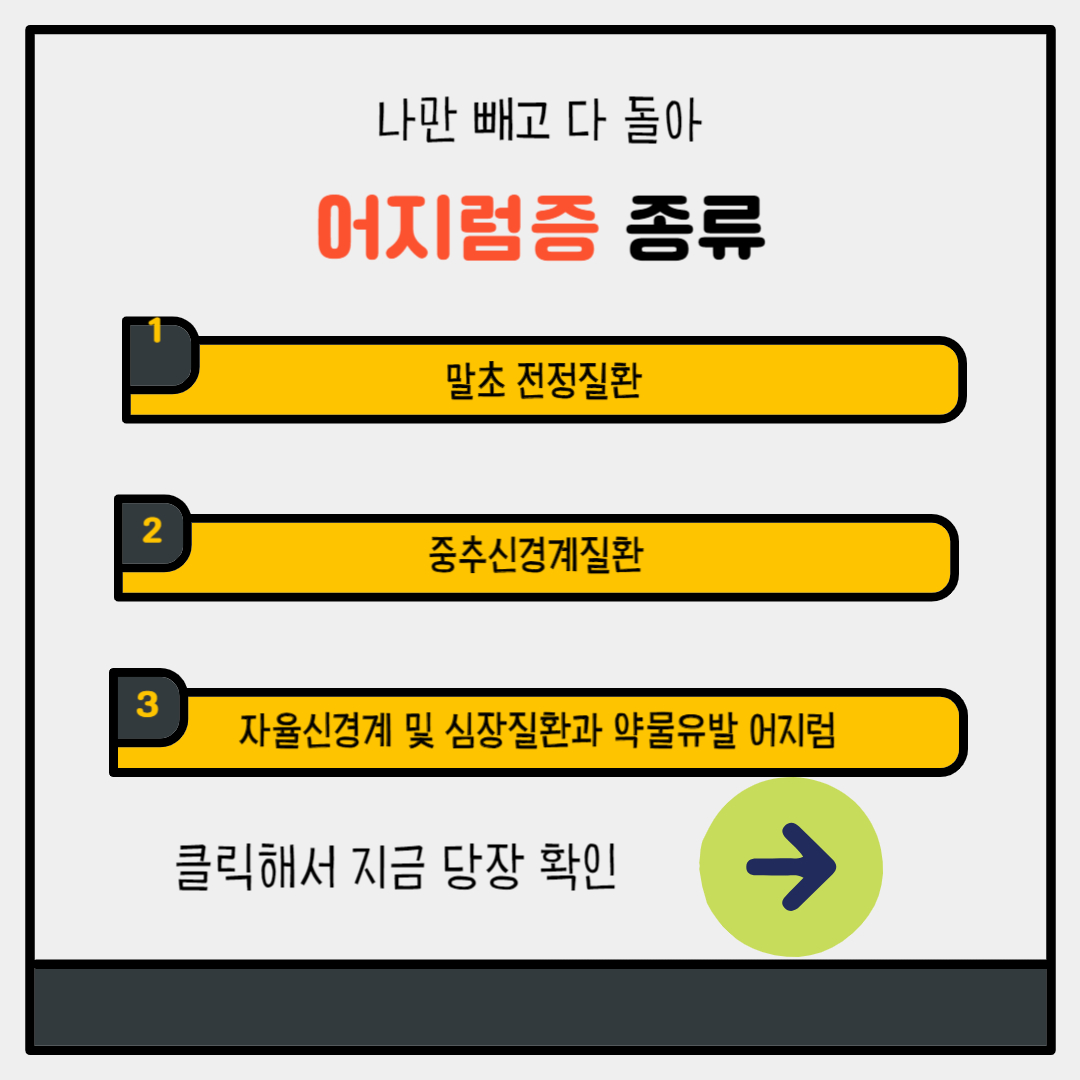 | - 특정 자세에서 눈의 움직임의 변화를 동반한 어지럼증이 있다. - 어지럼증과 함께 걷기나 균형을 유지하기 어렵다. - 어지럼증과 함께 갑자기 소리가 잘 들리지 않는다. |