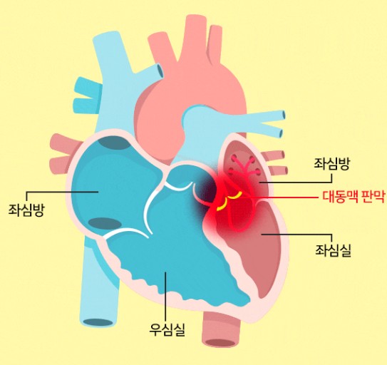 1) 퇴행성 변화 : 대동맥판막의 섬유 조직이 약해져서 판막이 제대로 닫히지 못합니다.
