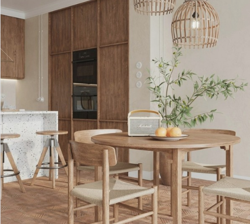 3) 나무 소재의 가구 : 원목 가구는 따뜻하고 포근한 느낌을 주어 토 기운을 강화합니다.