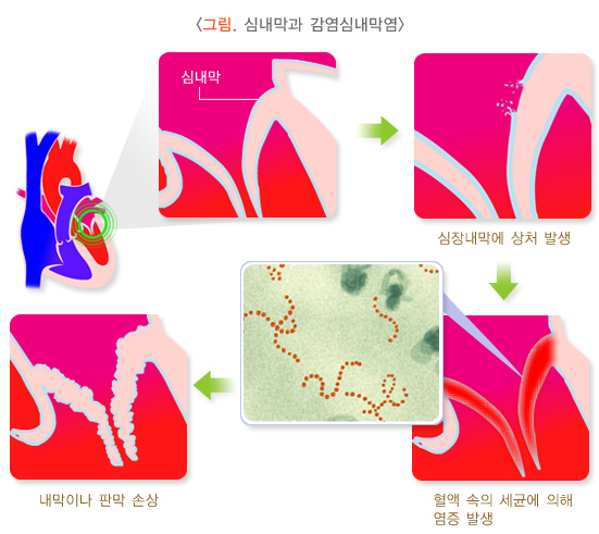 심내막염은 심장의 내막에 생기는 염증입니다. 심장의 내막은 심장 내부를 둘러싸고 있는 얇은 막으로, 심장의 기능을 원활하게 하는 역할을 합니다. 심내막염이 발생하면 심장의 기능이 저하되고, 심장마비나 돌연사를 유발할 수 있는 심각한 질환입니다.