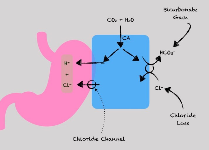 - 지속적인 구토는 염산을 손실시켜 혈액 pH를 높일 수 있습니다.