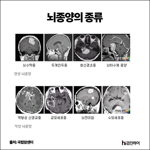 - 신경교종 : 뇌의 신경 세포막에서 발생하는 종양으로 가장 흔한 뇌종양입니다.