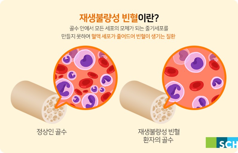 재생불량성 빈혈은 골수에서 적혈구, 백혈구, 혈소판을 만드는 조혈모세포가 손상되어 혈액세포가 제대로 생성되지 않는 질환입니다. 유병율은 인구 10만 명당 약 1~2명이고, 모든 연령대에서 발생할 수 있지만, 특히 20~50대가 많습니다.