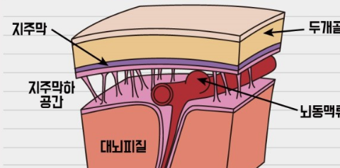지주막하출혈은 뇌를 둘러싸고 있는 얇은 막인 지주막과 뇌 사이의 공간에 혈액이 새어 나오는 질환입니다. 마치 터진 수도꼭지처럼 뇌 안에 혈액이 새어 나오면서 뇌를 압박하고, 심각한 후유증을 남길 수 있는 무서운 질환입니다.