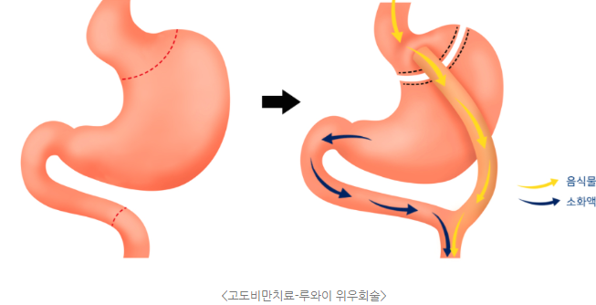 - 위우회술: 위 상부를 작은 주머니 모양으로 만들고, 소장과 직접 연결하여 음식물이 위를 거치지 않고 소장으로 바로 내려가게 하는 수술입니다.