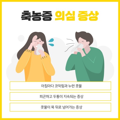 축농증의 증상은 감기와 비슷하여 구분이 쉽지 않을 수 있습니다. 그러나 감기의 경우 증상이 일주일 정도 지나면 자연적으로 호전되는 반면, 축농증은 증상이 일주일 이상 지속되거나 점점 심해진다면 축농증을 의심해 볼 수 있습니다.