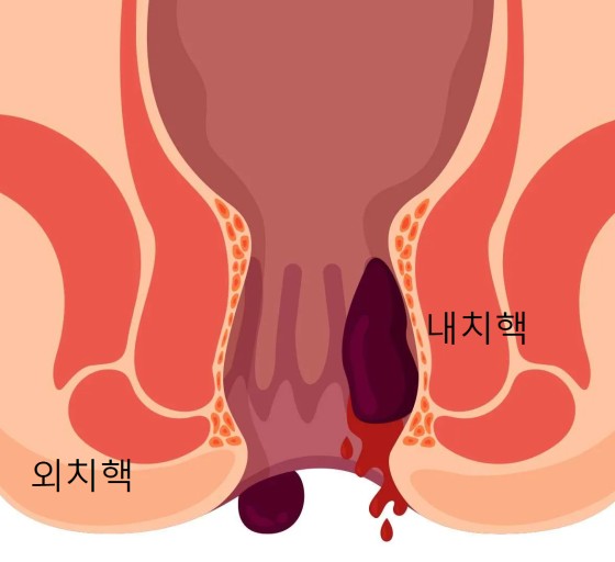 치핵은 항문 내부의 혈관이 부풀어 오른 질환입니다. 치핵은 내치핵과 외치핵으로 나눌 수 있고, 내치핵은 항문 안쪽에, 외치핵은 항문 바깥쪽에 발생하게 됩니다.