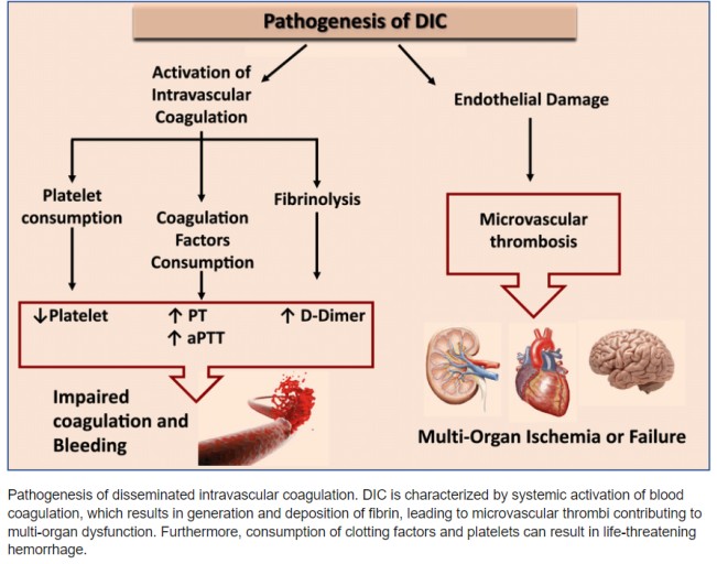 파종성 혈관 내 응고(DIC)는 혈액응고 인자가 과도하게 활성화되어 혈액 내에서 혈전이 생기고, 반대로 혈관 밖으로 출혈이 발생하는 질환입니다. DIC는 매우 심각한 질환으로, 갑작스러운 출혈과 혈전증을 유발하고, 심장, 폐, 신장, 뇌 등의 중요 장기에 손상을 입힐 수 있습니다.
