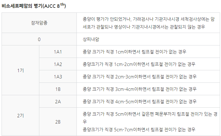 소세포암은 급속히 성장하기 때문에 제한성 병기와 확장성병기 2단계로만 구분합니다.