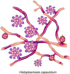 히스토플라스마증을 일으키는 히스토플라스마툼은 토양, 낙엽, 동물의 분변 등에 서식하는 진균입니다. 이 진균이 폐로 들어오면 감염을 일으킬 수 있습니다.