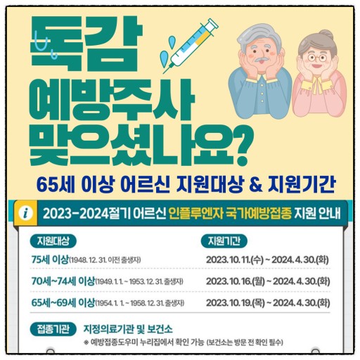 출처 :  2023년 독감 예방접종 무료대상자 접종시기 .. : 네이버블로그 (naver.com)