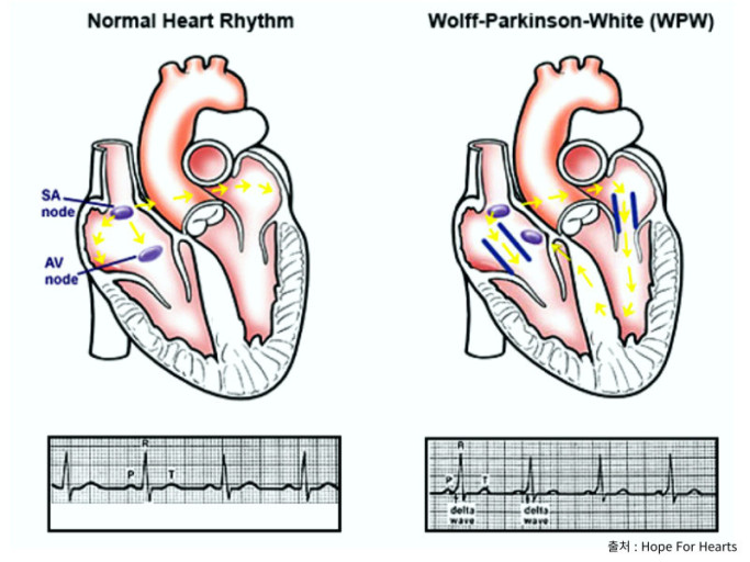 WPW 증후군은 심장의 전기 신호 전달에 이상을 초래하는 선천적인 질환입니다. 심장에는 정상적인 전기 회로가 존재하여 심박수를 조절하지만, WPW 증후군 환자는 추가적인 전기 회로가 존재해 심방 박동 이상을 초래합니다. 이러한 이유로 빈맥이나 부정맥이 나타날 수 있고, 드물지만 심각한 합병증도 초래합니다.