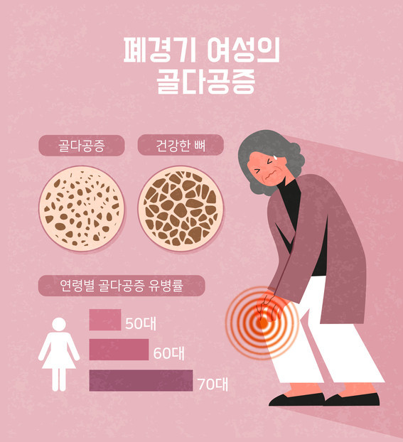 1) 폐경기 : 여성은 폐경 후 여성호르몬인 에스트로겐의 분비가 감소되어 골다공증이 발생할 위험성이 증가합니다.