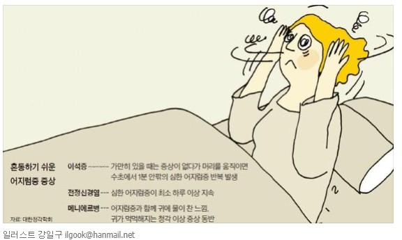 3) 어지럼증 : 빙빙 도는 듯한 어지럼증이 나타나고, 심하면 구토나 구역질을 동반합니다.