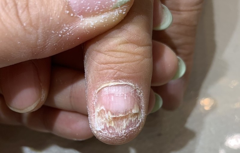 3) 손톱 무좀 : 손톱이 두꺼워지고, 갈라지며, 변색이 됩니다. 손톱이 떨어져 나갈 수 있습니다.