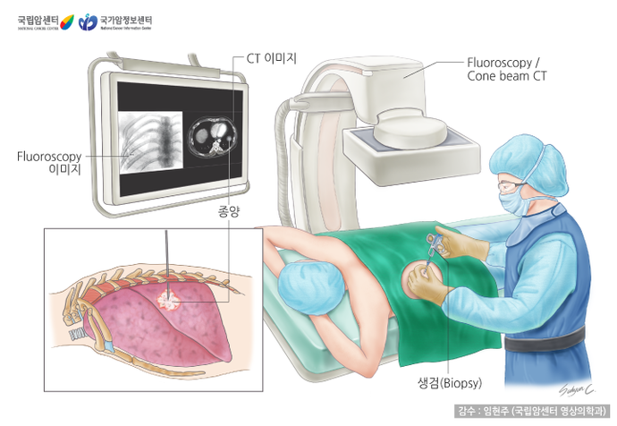 폐병변이 흉부 단순 X선 촬영과 CT 에서 잘 보이면서 기관지 내시경 등으로 접근이 어려운 경우 미세바늘을 이용해 조직이나 세포를 얻는 검사방법입니다. 금식 후 국소마취를 하고 피부를 통해 폐병변에 바늘을 찔러 넣어서 조직이 세포를 채취해서 암을 진단합니다.