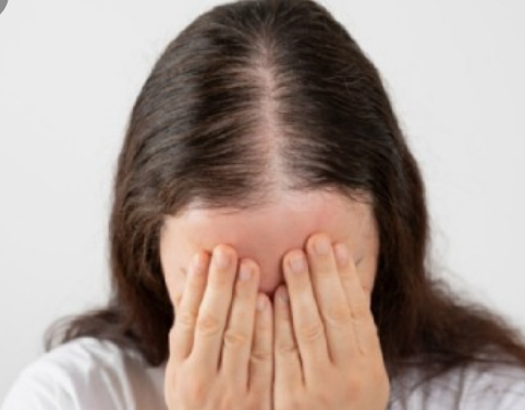 주로 폐경기 이후 에스트로겐 감소로 인해 정수리 부분부터 머리카락이 가늘어지고 숱이 적어지는 형태로 나타납니다.